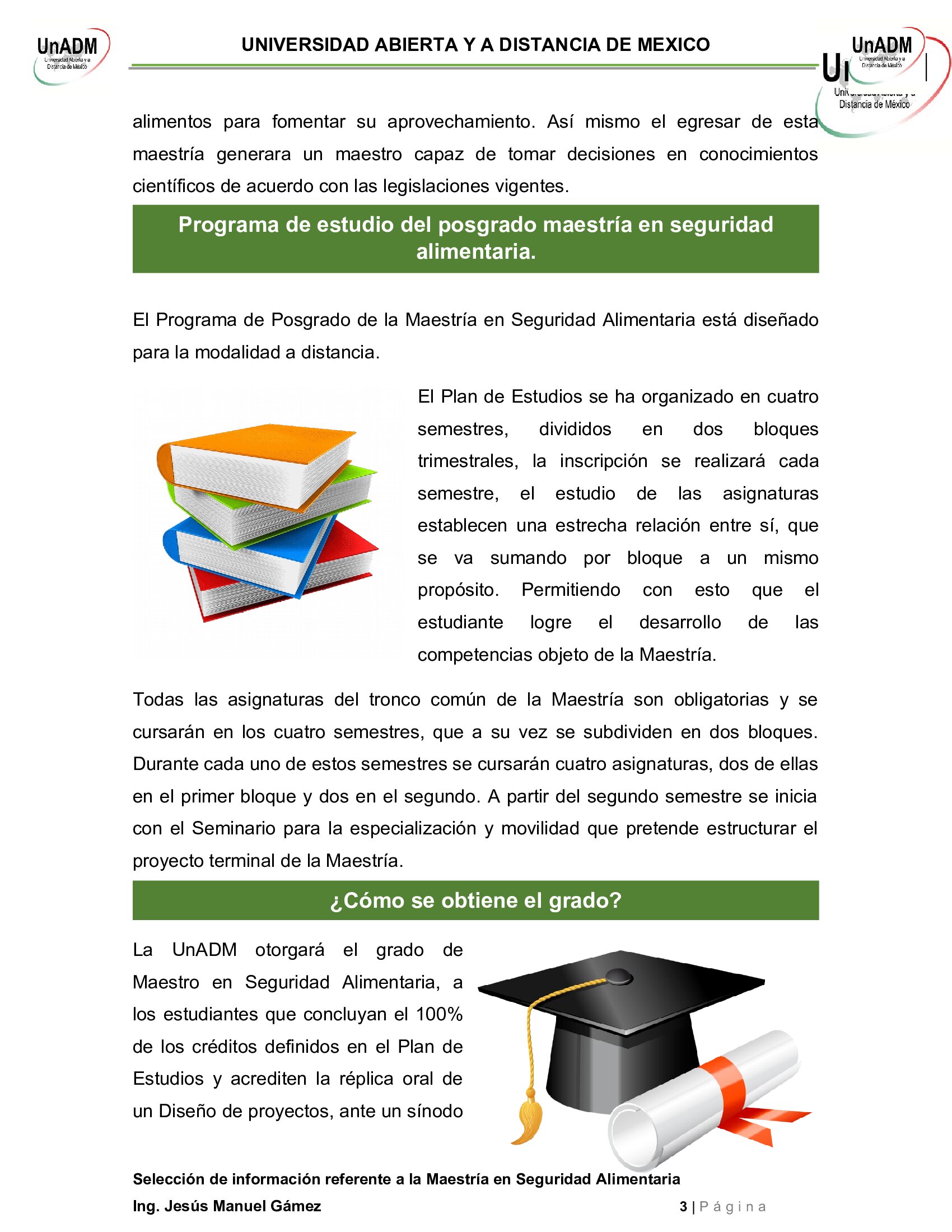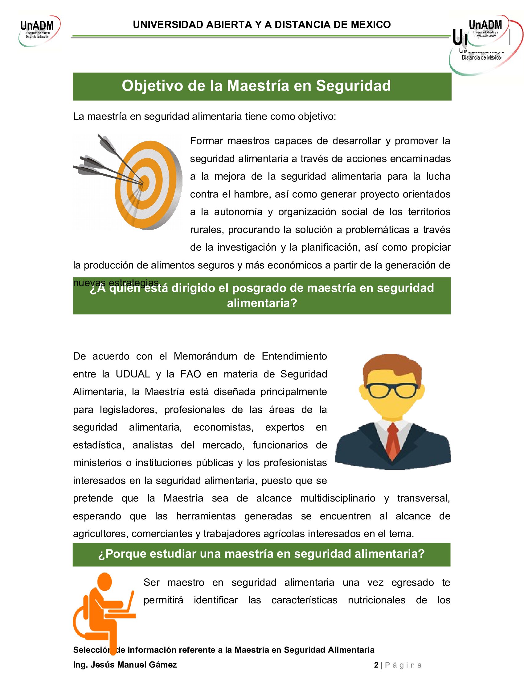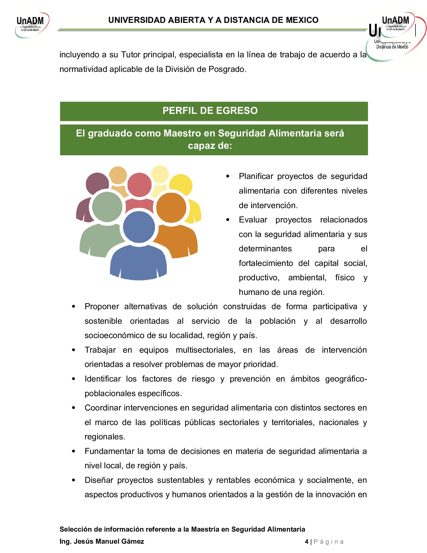 U4. Actividad 1. Selección de información referente a la Maestría en Seguridad Alimentaria.