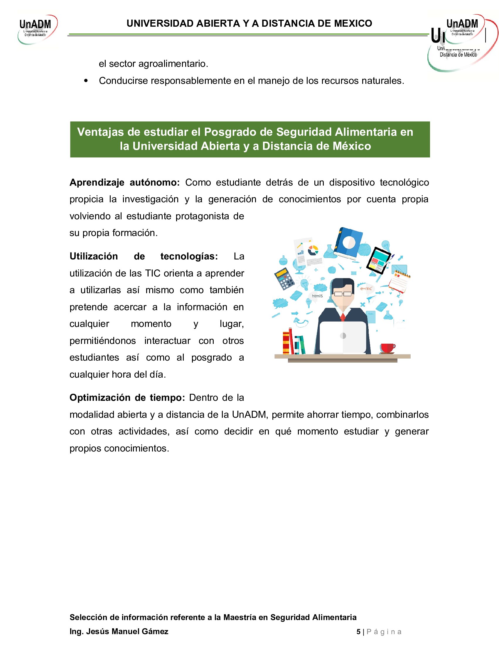 Ventajas de estudiar el Posgrado de Seguridad Alimentaria en la Universidad Abierta y a Distancia de México.